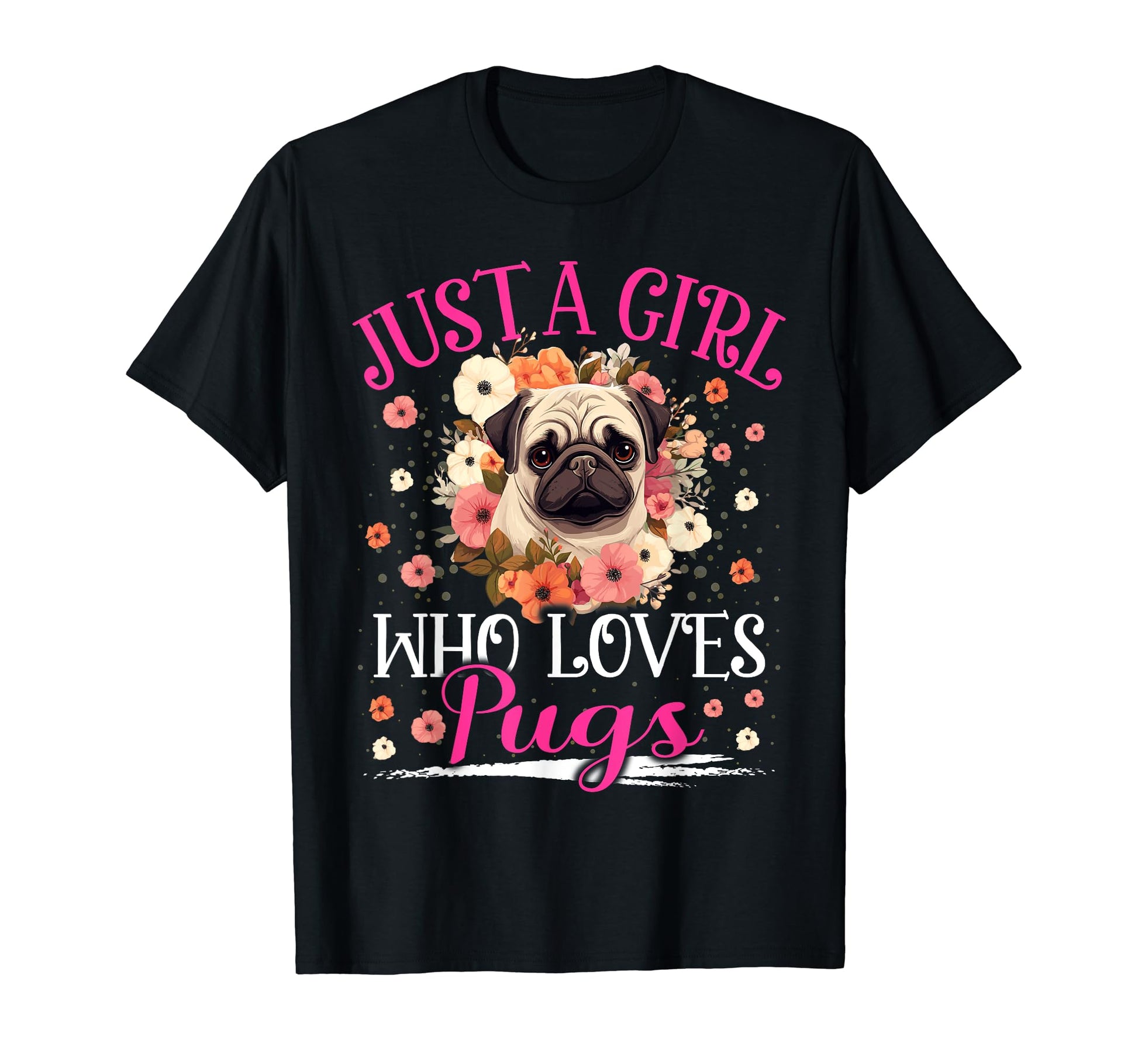 [Do you love Pugs and want to wear a Pug outfit? if yes get this floral Pug graphic for women girls kids. This design feature a big bold Pug and the phrase "Just A Girl Who Loves Pug" "This Floral Aesthetic Pug design is a great way to show that you love Pug . You can get this design for your mom daughter sister wife girlfriend & anyone. Wear its anywhere parties meet with Friends Family and Christmas Day." Lightweight Classic fit Double-needle sleeve and bottom hem]
